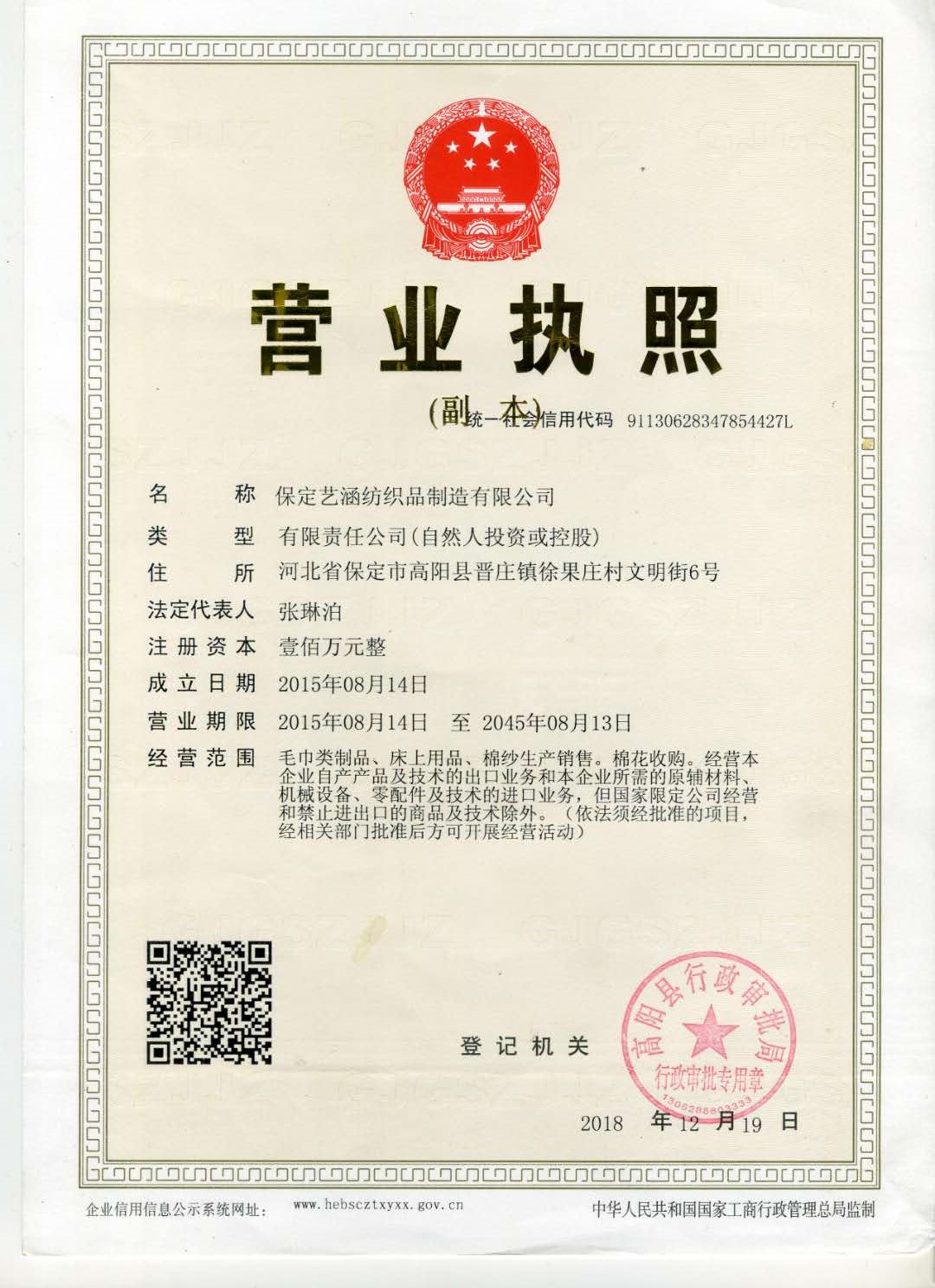 聚焦保定藝涵紡織品制造有限公司